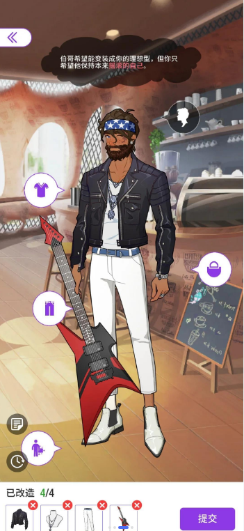 伯哥希望变装成你的理想型,但你更希望他保持真实的摇滚风格。这是一个考验你审美和品味的挑战。