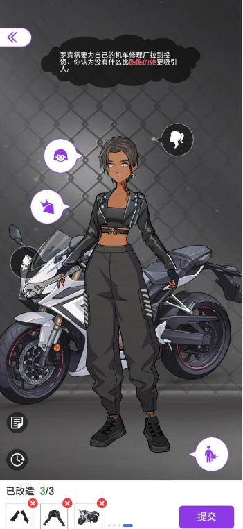 罗宾的机车修理厂需要投资,她认为没有什么比酷酷的她更能吸引投资了。你需要帮助她展示自己的魅力,吸引投资者的注意。